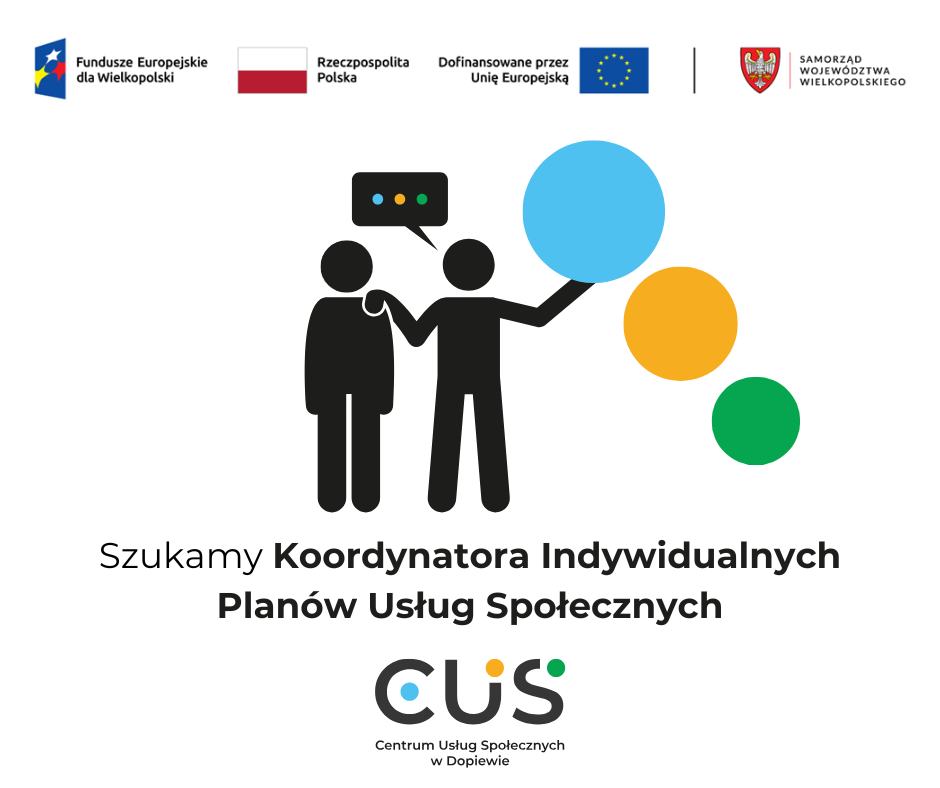 W związku z realizacją projektu współfinansowanego z funduszy Unii Europejskiej pt. „Rozwój Wielkopolskiej Sieci Centrów Usług Społecznych”, realizowanego w ramach Programu Operacyjnego Fundusze Europejskie dla Wielkopolski na lata 2021-2027 przez Gminę Dopiewo, poszukujemy Koordynatora Indywidualnych Planów Usług Społecznych.